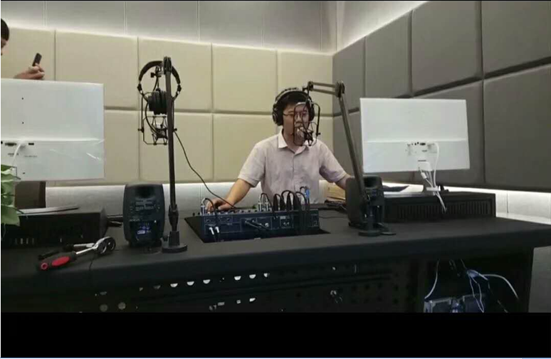 話放采用英國(guó)AMS Neve/ 1073DPA一臺(tái)專業(yè)級(jí)錄音話放,音頻接口使用德國(guó)RME Fire face UFX+一臺(tái),監(jiān)聽系統(tǒng)采用頂級(jí)芬蘭真力監(jiān)聽音箱Genelec/ 8010 2只。監(jiān)聽耳機(jī)采用日本鐵三角AudioTechnica /ATH-M50X 等、為富士康打造頂級(jí)高標(biāo)準(zhǔn)錄音室,并得到了廠區(qū)領(lǐng)導(dǎo)一直好評(píng)。