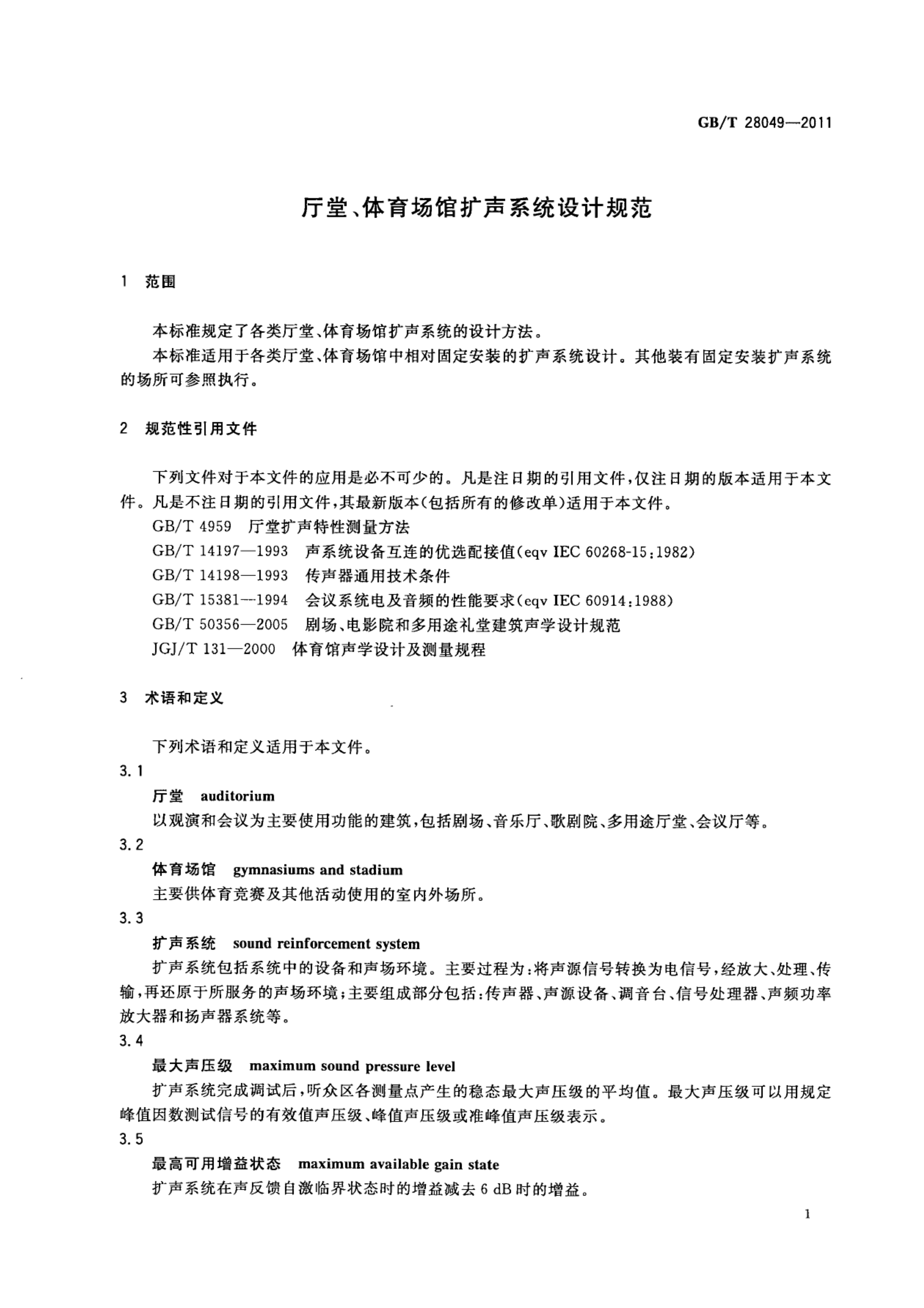 廳堂、體育場館擴聲系統(tǒng)設(shè)計規(guī)范