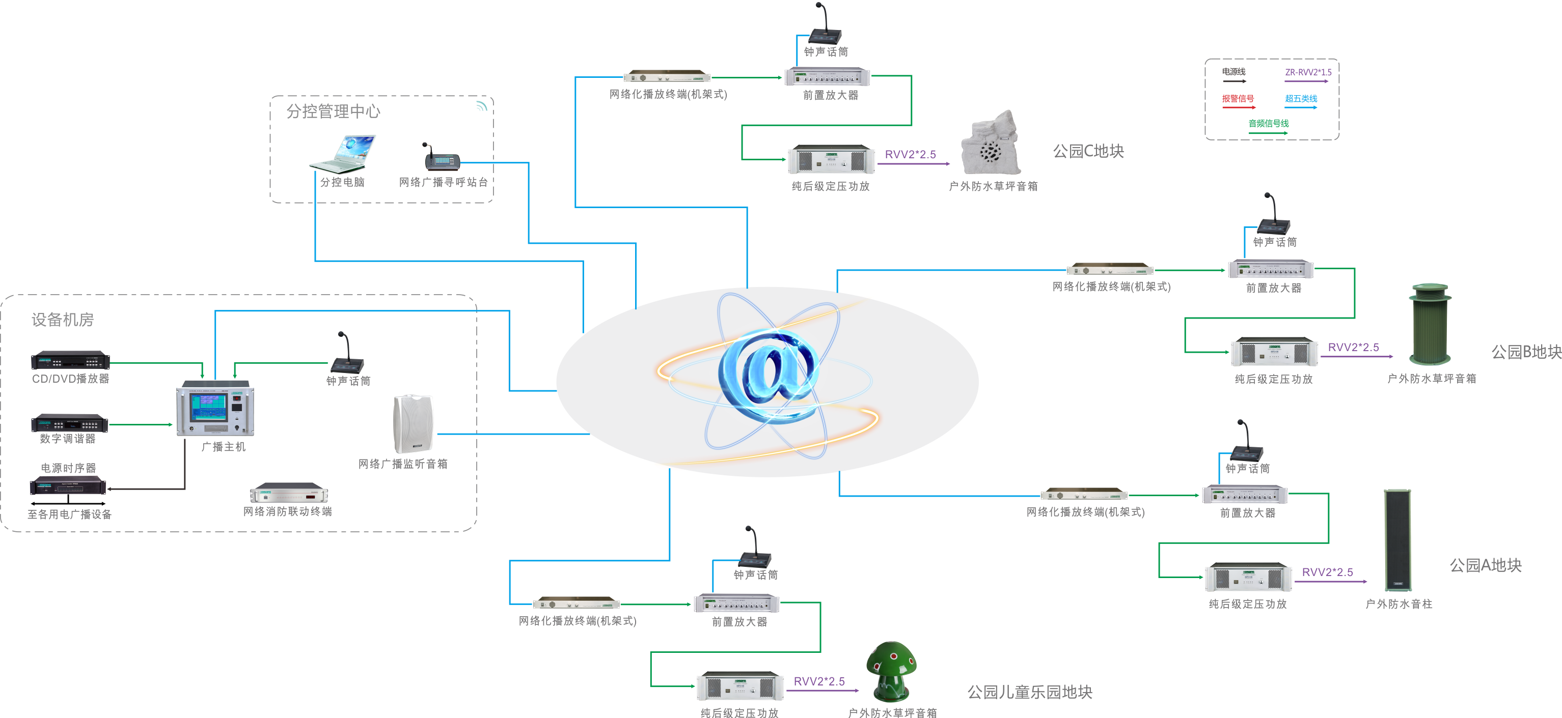 景區(qū)數(shù)字IP背景音樂系統(tǒng)拓撲圖