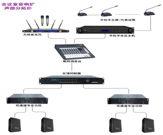 本設計方案適用于:60-120㎡中小型會議室,通過小體積、大聲壓、大動態(tài)專業(yè)音響產品為核心設計的會議室系統(tǒng)方案,滿足會議、學術討論擴聲的各種要求。