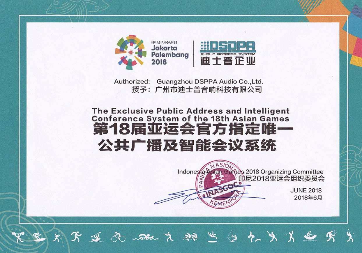 亞洲能量,中國榜樣!2018年,迪士普簽約成為第18屆亞運會官方支持合作伙伴及第18屆亞運會官方指定唯一公共廣播及智能會議系統(tǒng)。迪士普產(chǎn)品成功進駐印尼亞組委辦公大樓會議室,產(chǎn)品質(zhì)量、功能以及安裝服務都受到印尼第18屆亞運會組委會的高度認可!繼2008北京奧運會,2010上海世博會、廣州亞運會,2014俄羅斯索契冬奧會后,迪士普再登世界舞臺,綻放中國民族企業(yè)的風采!