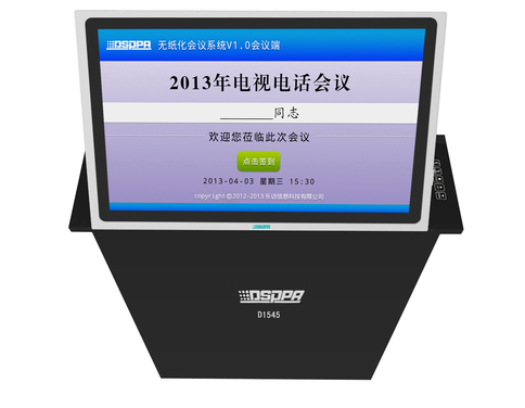 ◆ 迪士普新款升降系統(tǒng),使得一體終端升起后可根據(jù)與會者的個人需要,對屏幕的可視角度進行0-45度調(diào)整,這樣既方便了與會者操作和觀看屏幕,同時與會者觸摸控制屏幕時將不再像傳統(tǒng)15度屏幕一樣容易抖動。保證了對面的參會人員可以看到與會代表的臉,從而保證會議更好的溝通